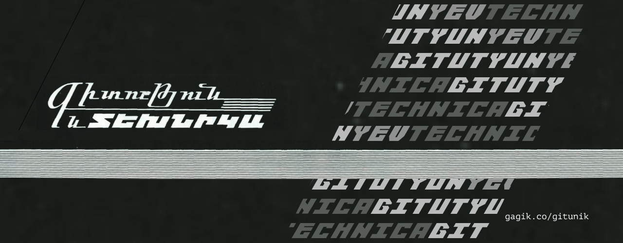 Gitunik is a font inspired by the Տեխնիկա (Technica) typeface by Henrik Mnatsakanyan, one of the pioneers of Soviet Armenian typography. It is heavily influenced by Russian Constructivism and features a bold and blocky design.